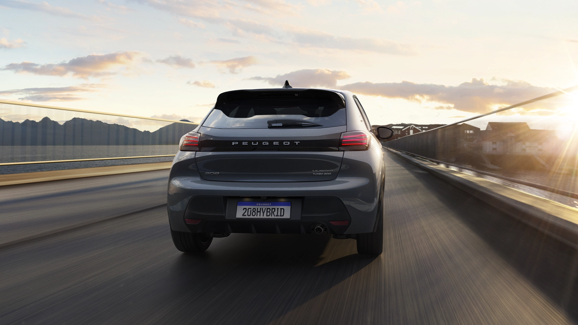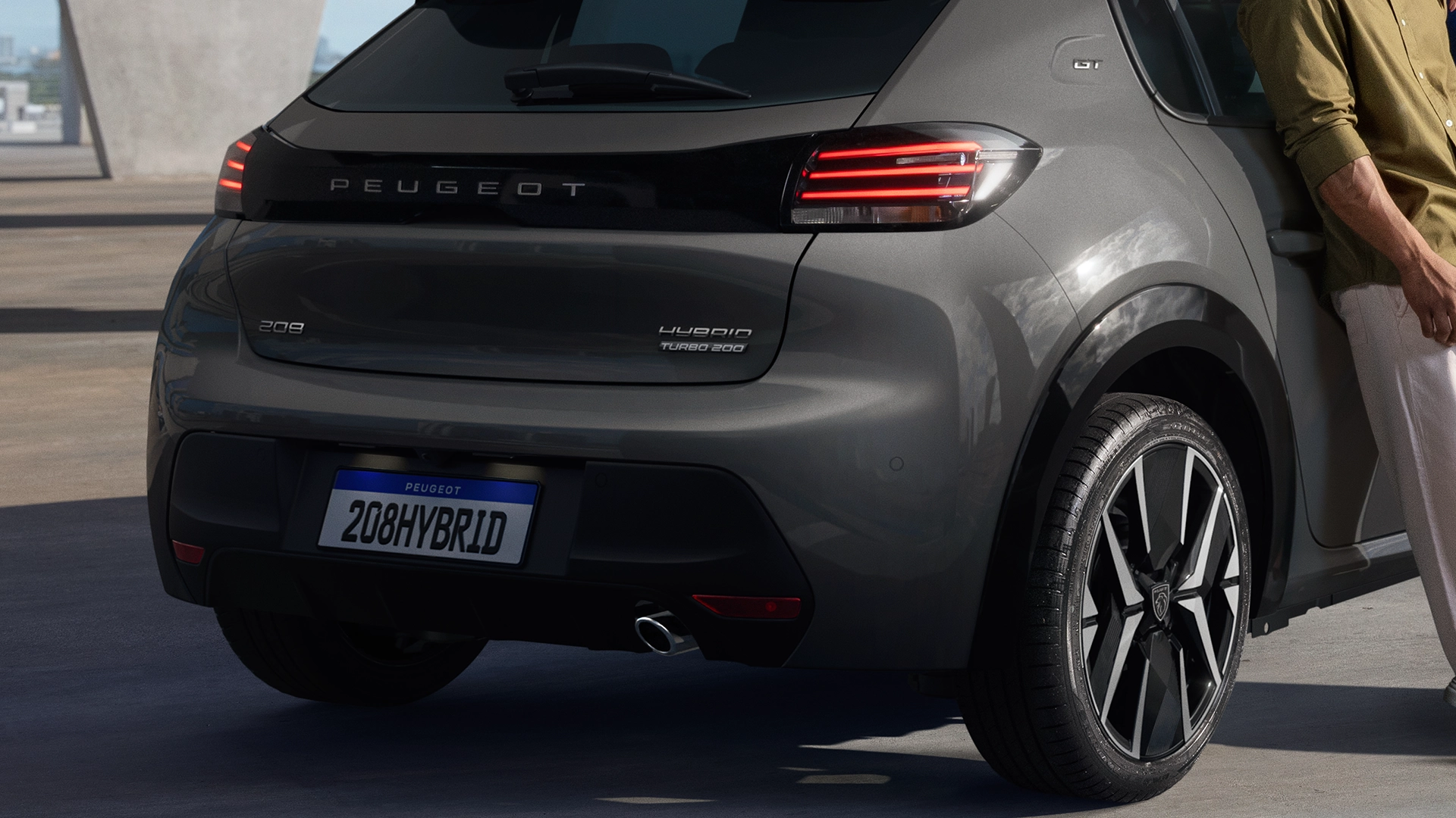 O Novo Peugeot 208 GT Hybrid AT vem com rodas de liga-leve diamantadas de 17” YANAKA, grade dianteira bodycolor, saída de escapamento com ponteira cromada e os badges GT e Hybrid – diferenciais que expressam design e inovação.