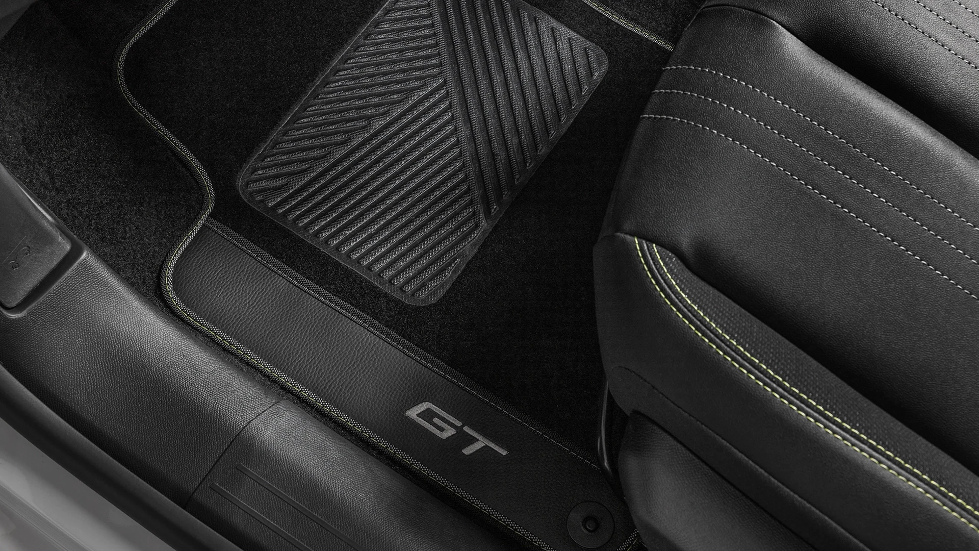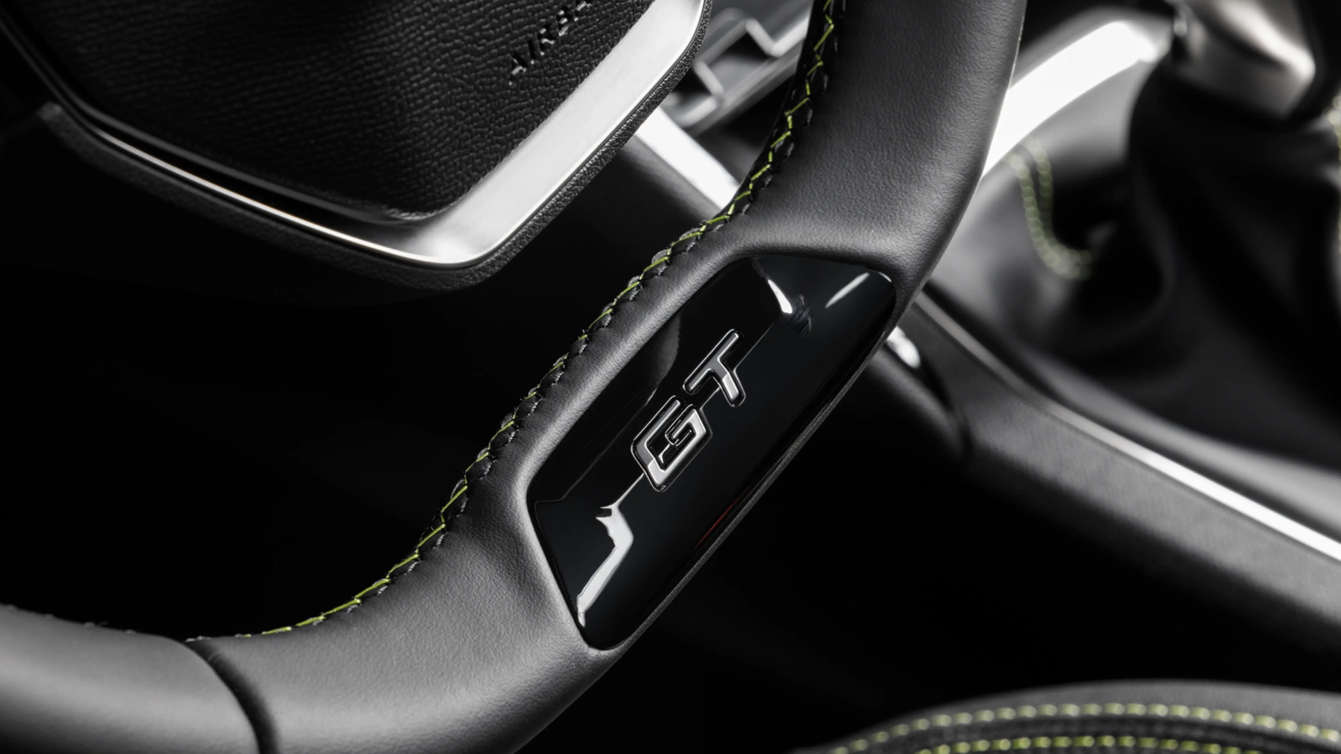 Com diâmetro reduzido, o volante proporciona uma condução mais esportiva e intuitiva. Traz comandos de som integrados e na versão GT Hybrid AT, recebe acabamento com costura verde exclusiva.