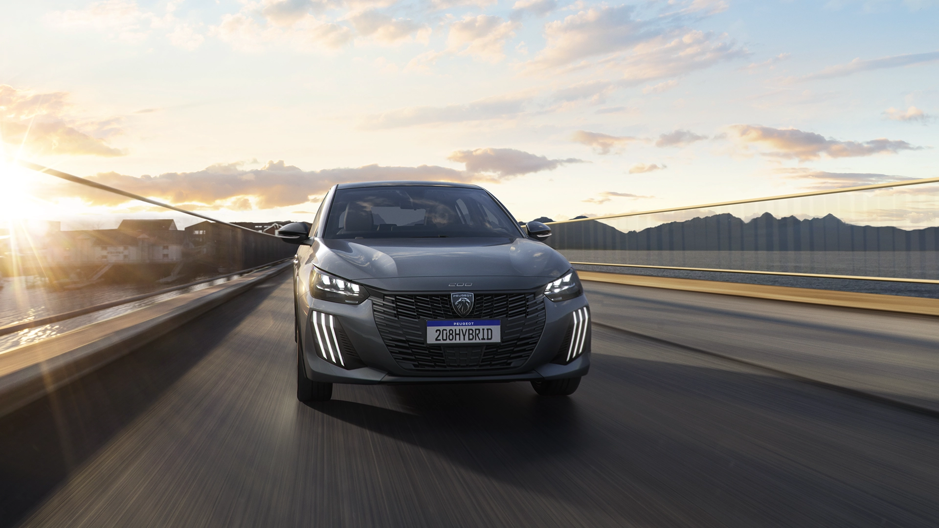O Novo Peugeot 208 Hybrid AT carrega uma identidade luminosa, com faróis full LED em formato de garra de leão e luzes DRL a LED.