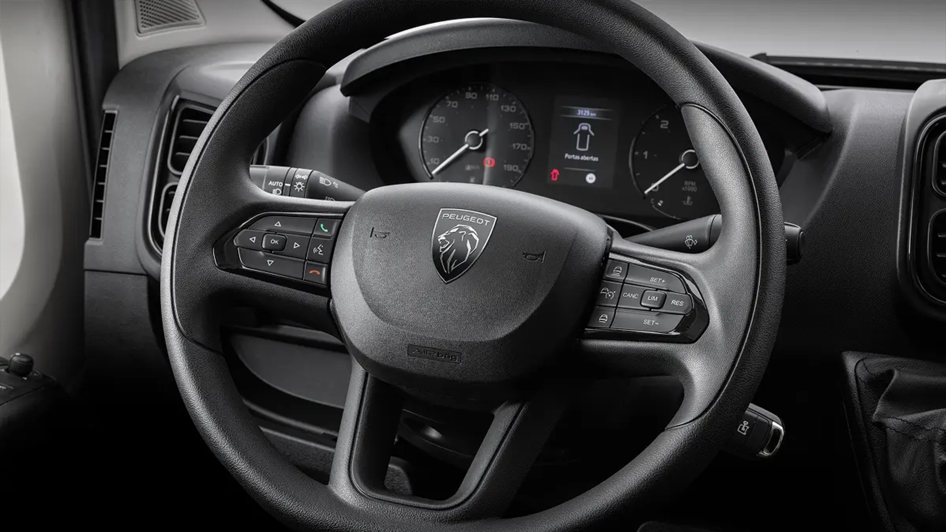 Com o apoio de braço do motorista proporciona uma posição de condução mais ergonômica, reduzindo o cansaço durante longas jornadas. Um detalhe que faz toda a diferença no dia a dia.
