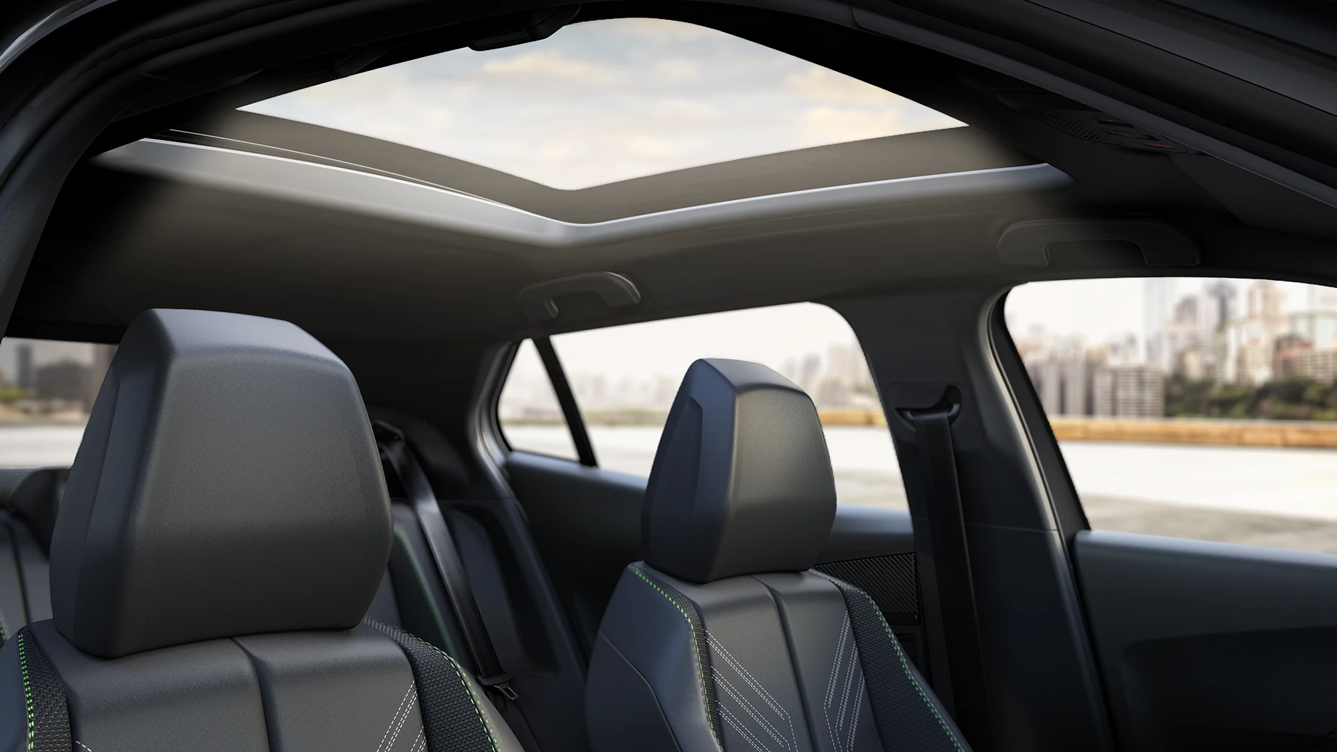 Tenha o melhor da luz natural com o teto solar panorâmico no interior do seu Novo Peugeot E-2008.