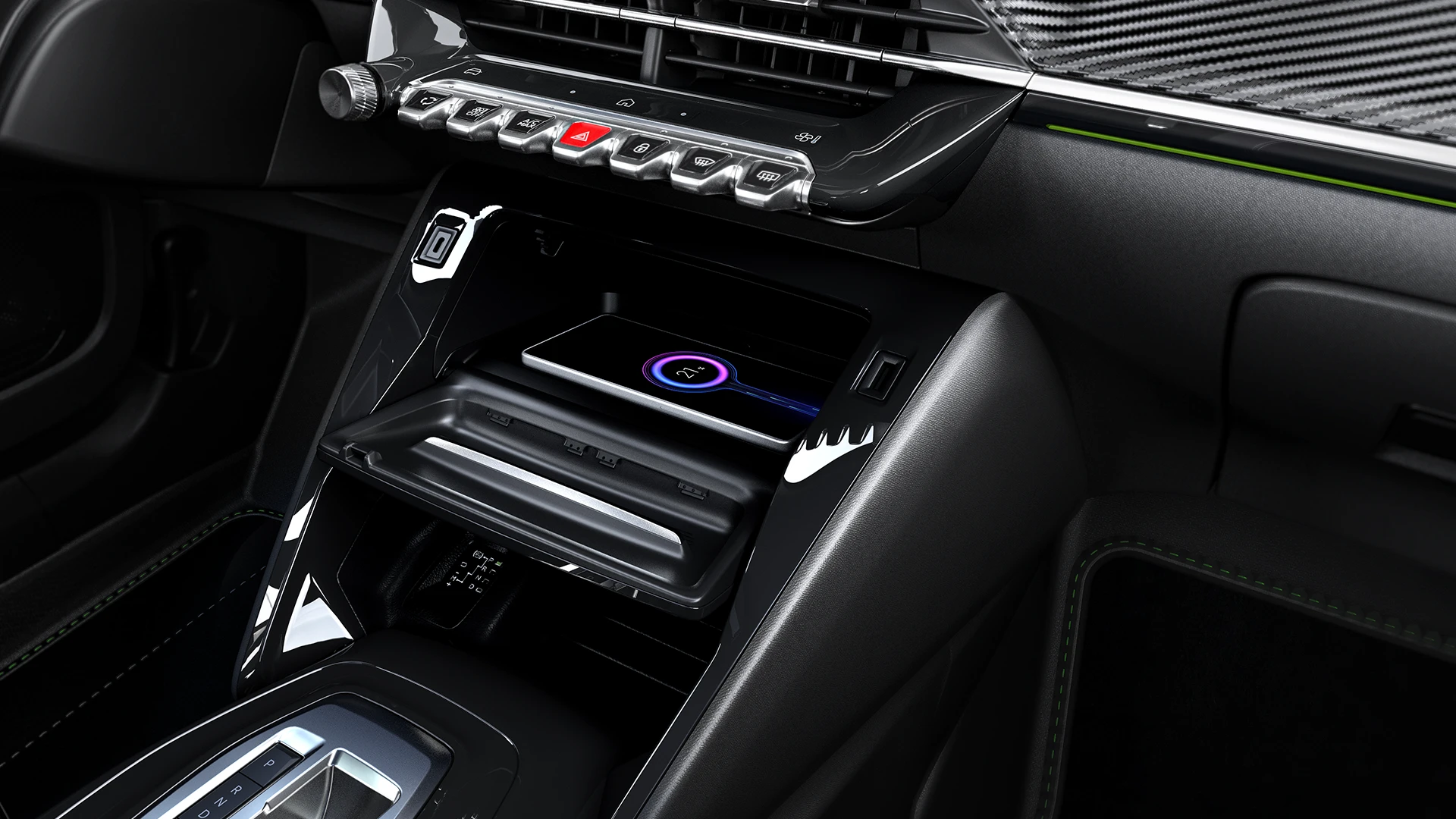 Automático e digital, o ar-condicionado garante uma jornada com a temperatura sempre ideal dentro do seu Novo Peugeot E-2008.